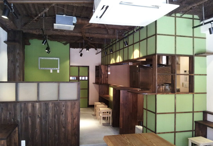 店内はカウンター席もテーブル席もあり、様々なシーンで利用できます。真ん中には8名が座れるビッグテーブルがあり、存在感を放っています。